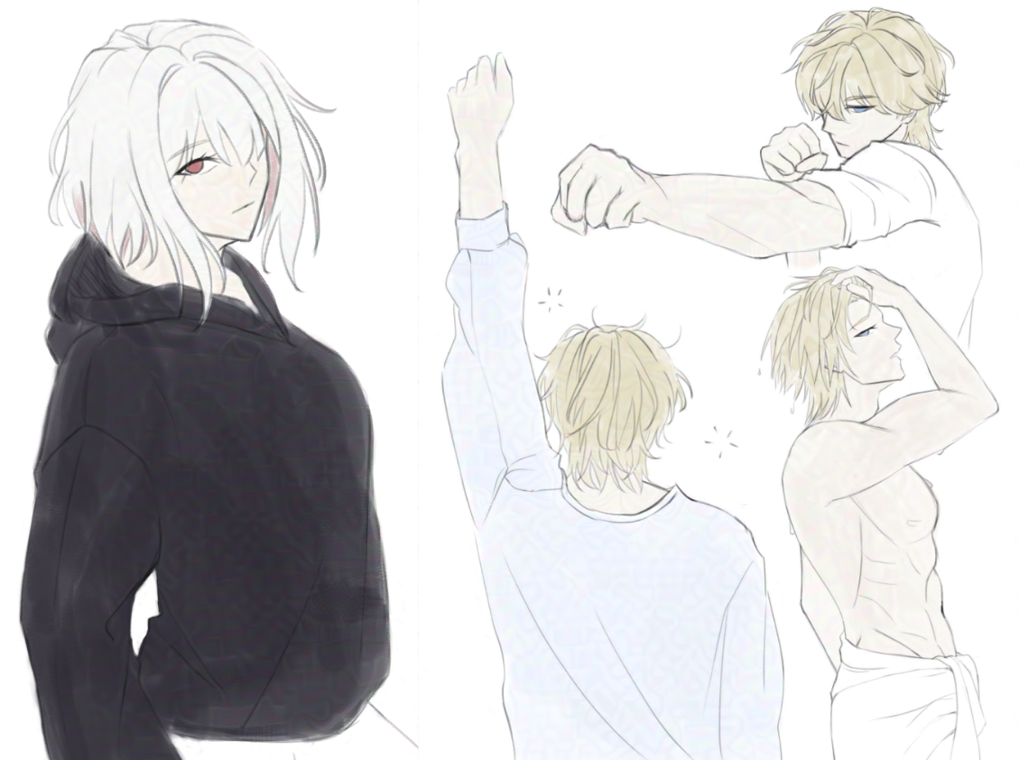 Night of the Blood Moon is set in a story universe that has been in development for years, since 2022 when I first had the idea. The characters designs have gone through multiple revisions and the original designs of the main cast were very different from their final ones. These are some of the later designs of two of the main characters in the story, which were drawn while I was studying anatomy from a reference book. The designs have remained largely unchanged since then.