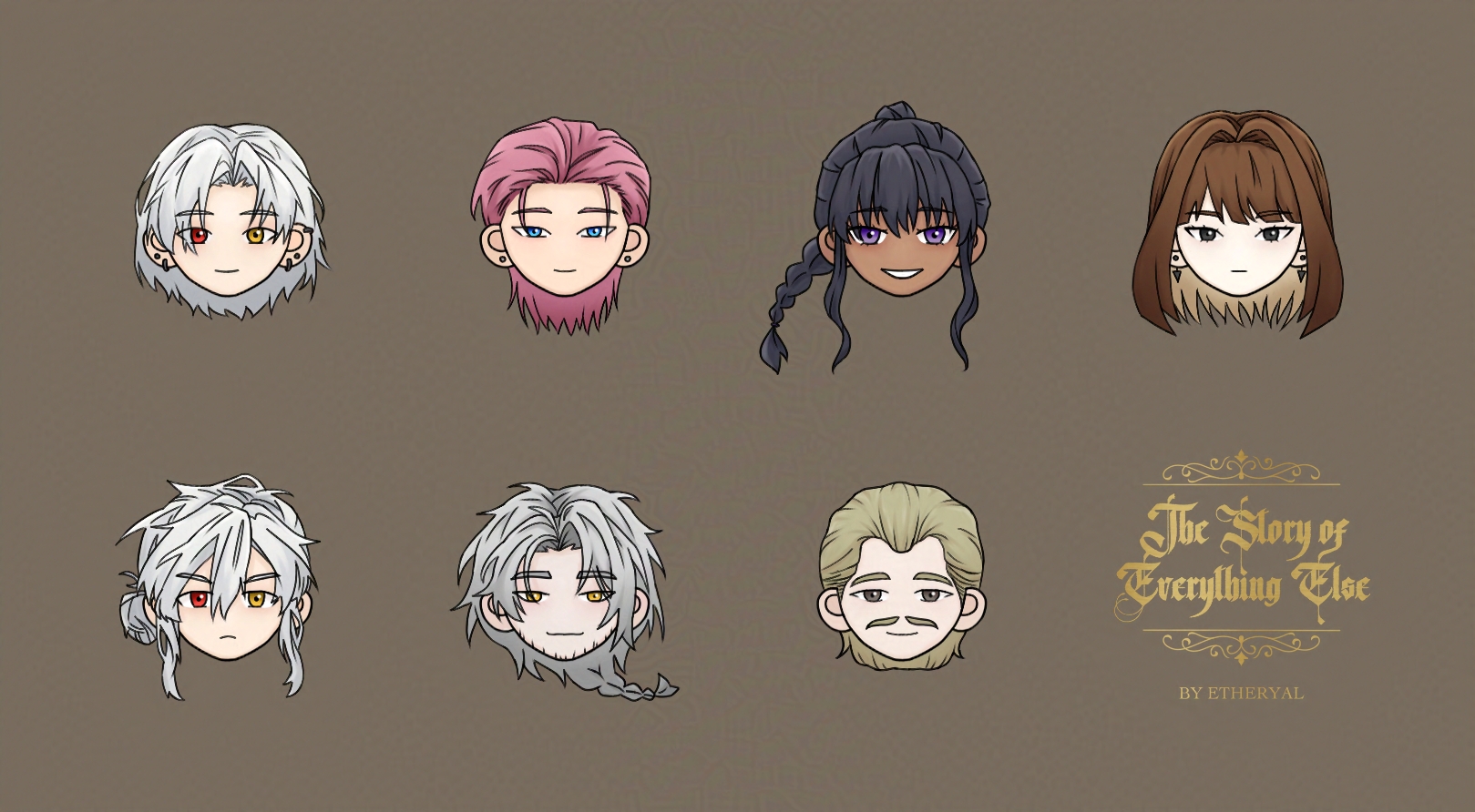 The very first concepts of the character designs was done on Picrew, solely to decide on the characters' hairstyles and colour schemes. After which, I modified their designs to my liking and style. However, I consider that a very early draft and so there are many things that have changed since then, besides their colour schemes that have remained pretty much the same. In designing these characters, I went for more unique and memorable features such as the main character's different coloured eyes, but also ones that I felt would fit them, such as brighter colours that stand out for a royal and something less conspicuous for an assassin.